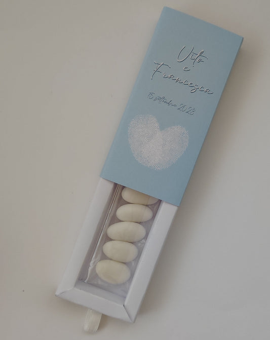 Scatola in carta a fiammifero con confetti