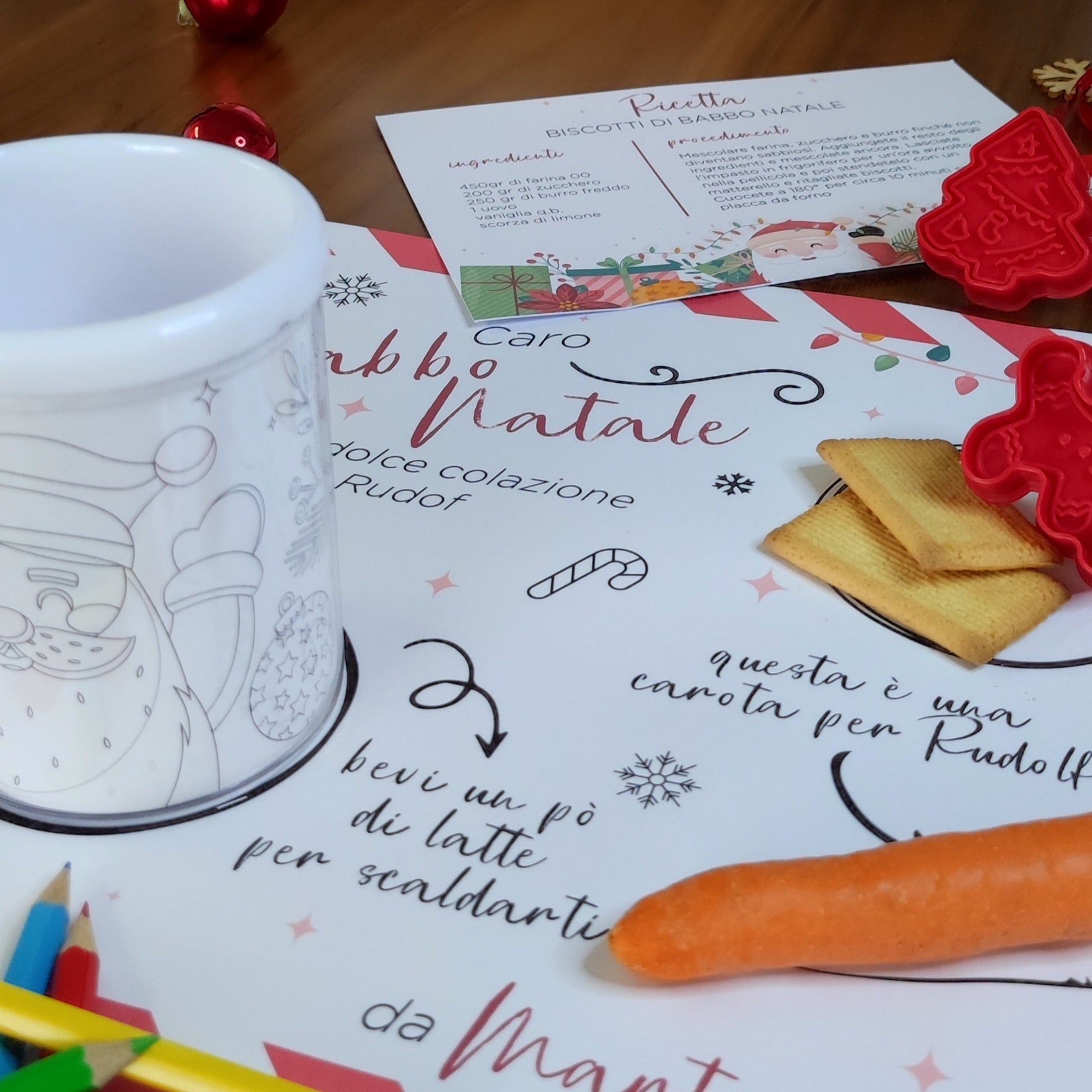Tovaglietta in carta con tazza da colorare di Babbo Natale